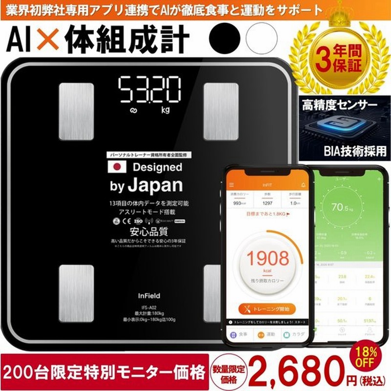 Ai 体組織計 体重計 ランキング 1位 スマホ連動 体脂肪計 高精度 体重 体脂肪率 水分率 基礎代 など13項目測定 を専用アプリに表示 Infitアプリと連動 通販 Lineポイント最大0 5 Get Lineショッピング